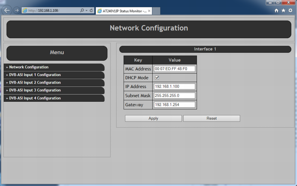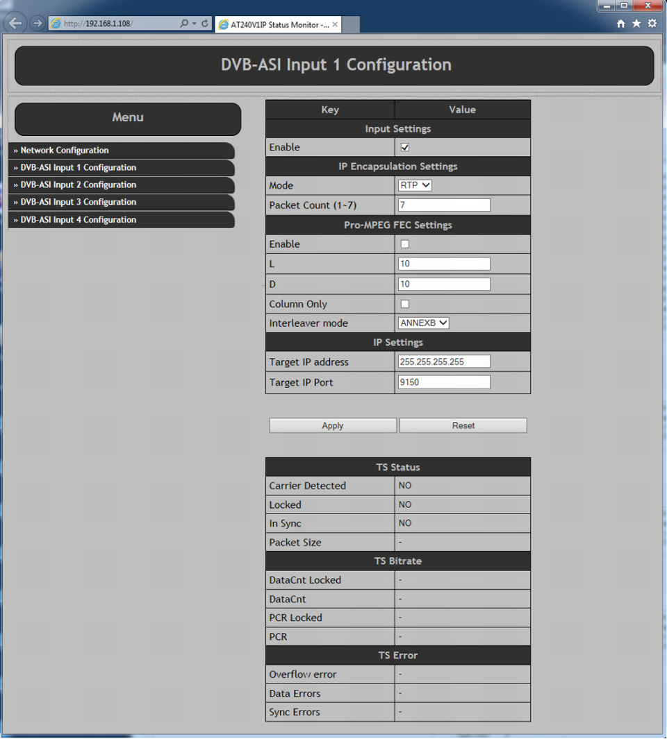 For multiple TS interfaces, the AT240IP, individually maps each one to a specific UDP/IP socket (a combination of IP address and UDP port).