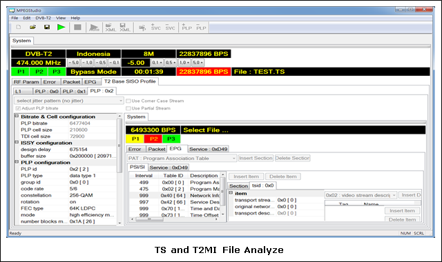 DVB-T2 (T2MI) Analysis, Edit, Generation support (Single PLP & Multi PLP)