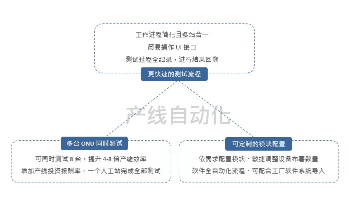 - 一站式集成:集成所有 ONU 需要的测试,简易设置快速上线