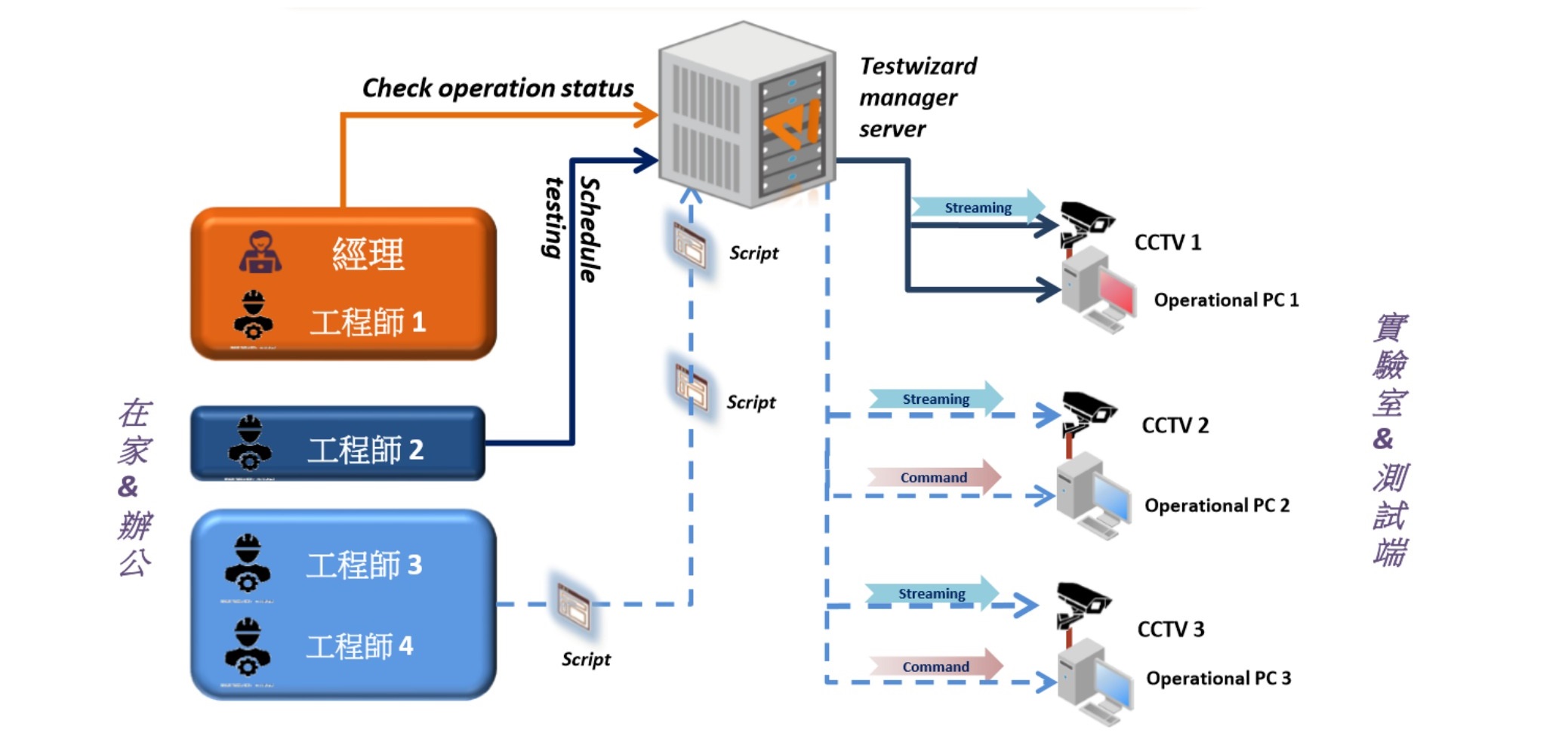 TestWizard因应分散式办公模式的兴起,在运行的架构上拥有良好的分工效果。