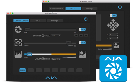 RovoControl is free software from AJA for Mac, Windows or Linux, designed to be a simple application for controlling one or multiple RovoCams, offering easy control of all the main camera features like zoom, iris and focus.