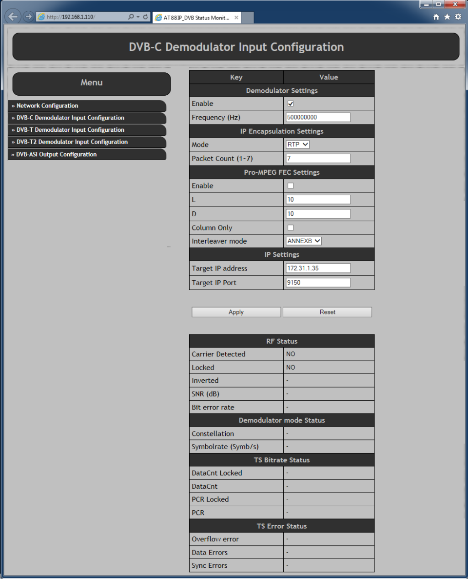 Modulation Modes: DVB-C: 64QAM, 128QAM, 256QAM