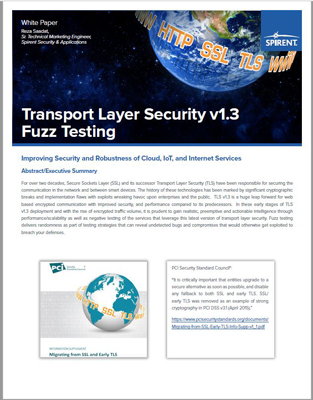 For over two decades, Secure Sockets Layer (SSL) and its successor Transport Layer Security (TLS) have been responsible for securing the communication in the network and between smart devices. The history of these technologies has been marked by significant cryptographic breaks and implementation flaws with exploits wreaking havoc upon enterprises and the public. TLS v1.3 is a huge leap forward for web based encrypted communication with improved security, and performance compared to its predecessors. In these early stages of TLS v1.3 deployment and with the rise of encrypted traffic volume, it is prudent to gain realistic, preemptive and actionable intelligence through performance/scalability as well as negative testing of the services that leverage this latest version of transport layer security. Fuzz testing delivers randomness as part of testing strategies that can reveal undetected bugs and compromises that would otherwise get exploited to breach your defenses.