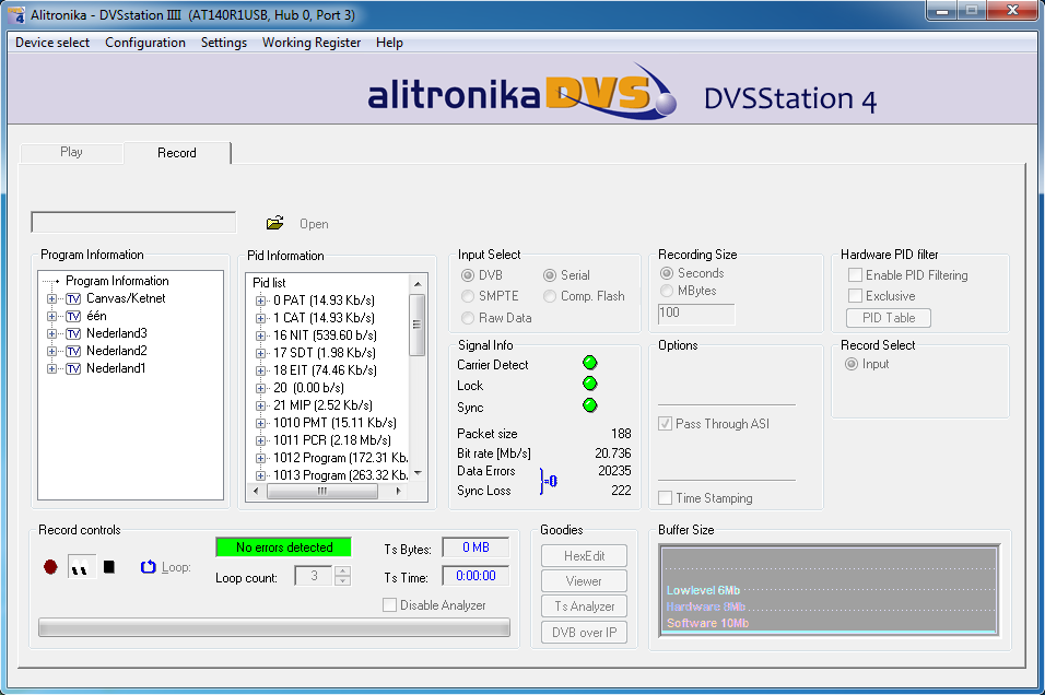 DVSStation3/4/IP: Các thiết bị Alitronika được hỗ trợ bởi DVSStation3 / DVSStation4 hoặc DVSStationIP, phần mềm ứng dụng chuyển đổi, ghi, phân tích và ứng dụng chuyển đổi MIỄN PHÍ của Alitronika. Vui lòng tham khảo đặc điểm kỹ thuật và Hướng dẫn sử dụng của các ứng dụng này để biết thêm thông tin. Tốt hơn nữa hãy tải chúng xuống từ trang web của chúng tôi và dùng thử. Chúng hoạt động ở chế độ DEMO mà không cần bất kỳ thiết bị Alitronika nào.Play Screen=> In normal operating conditions