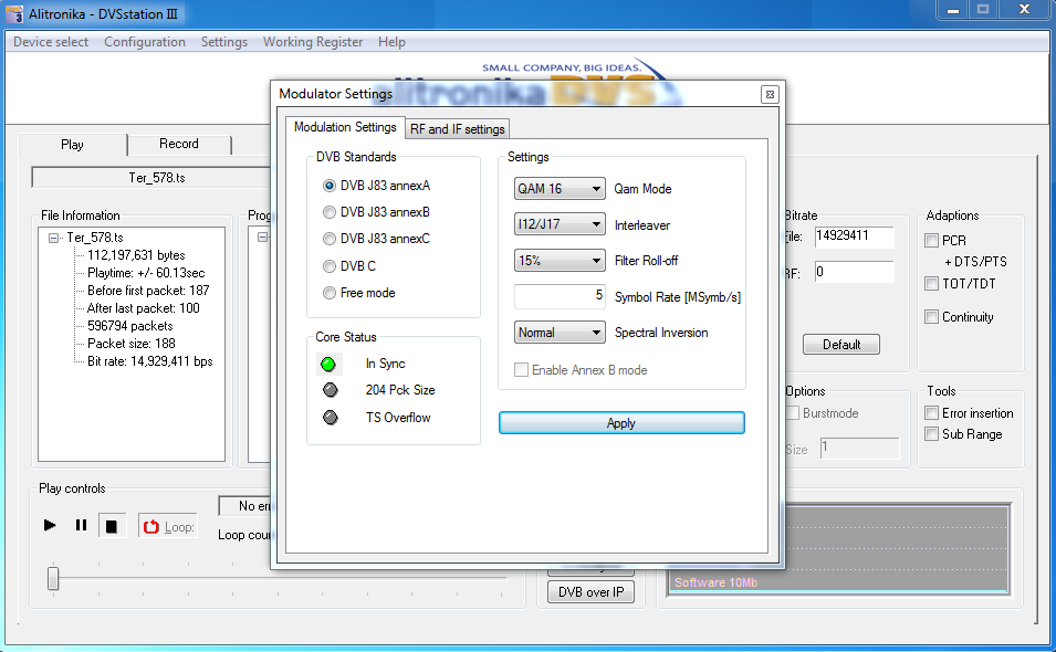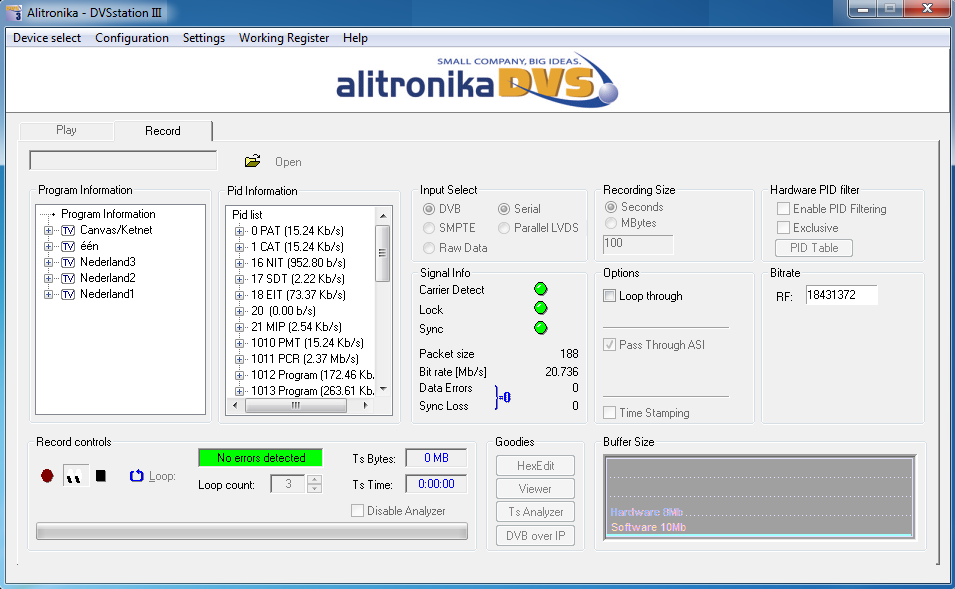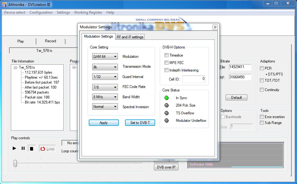 Các thiết bị của Alitronika được hỗ trợ bởi DVSStation3 / DVSStation4 hoặc DVSStationIP, phần mềm ứng dụng chuyển đổi, ghi, phân tích và ứng dụng chuyển đổi MIỄN PHÍ của Alitronika. Vui lòng tham khảo đặc điểm kỹ thuật và Hướng dẫn sử dụng của các ứng dụng này để biết thêm thông tin. Tốt hơn nữa hãy tải chúng xuống từ trang web của chúng tôi và dùng thử. Chúng hoạt động ở chế độ DEMO mà không cần bất kỳ thiết bị Alitronika nào.