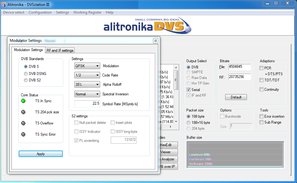 Các thiết bị của Alitronika được hỗ trợ bởi DVSStation3 / DVSStation4 hoặc DVSStationIP, phần mềm ứng dụng chuyển đổi, ghi, phân tích và ứng dụng chuyển đổi MIỄN PHÍ của Alitronika. Vui lòng tham khảo đặc điểm kỹ thuật và Hướng dẫn sử dụng của các ứng dụng này để biết thêm thông tin. Tốt hơn nữa hãy tải chúng xuống từ trang web của chúng tôi và dùng thử. Chúng hoạt động ở chế độ DEMO mà không cần bất kỳ thiết bị Alitronika nào
