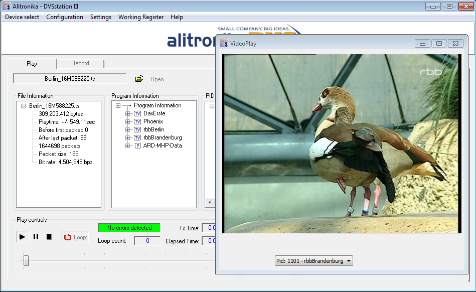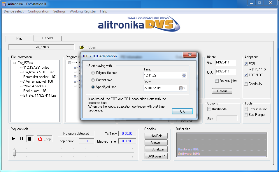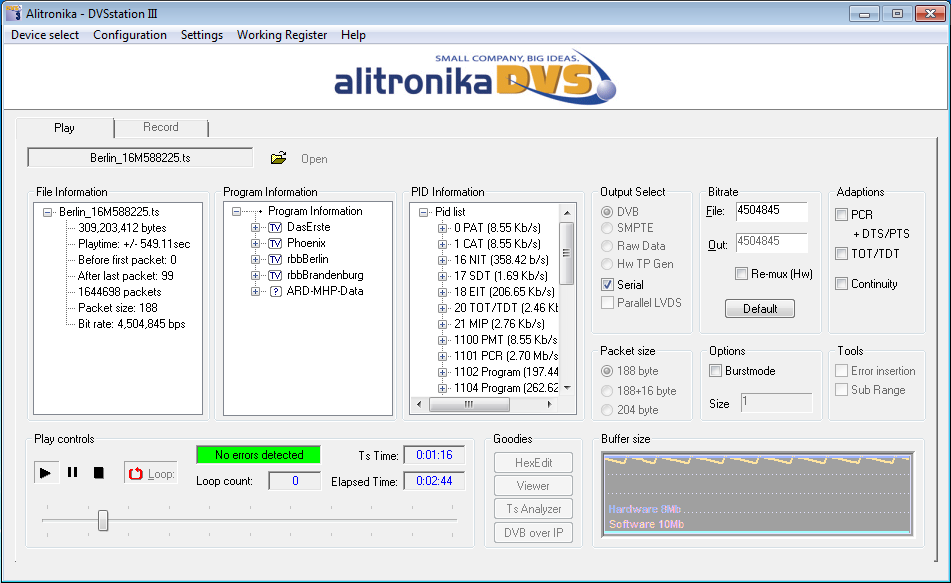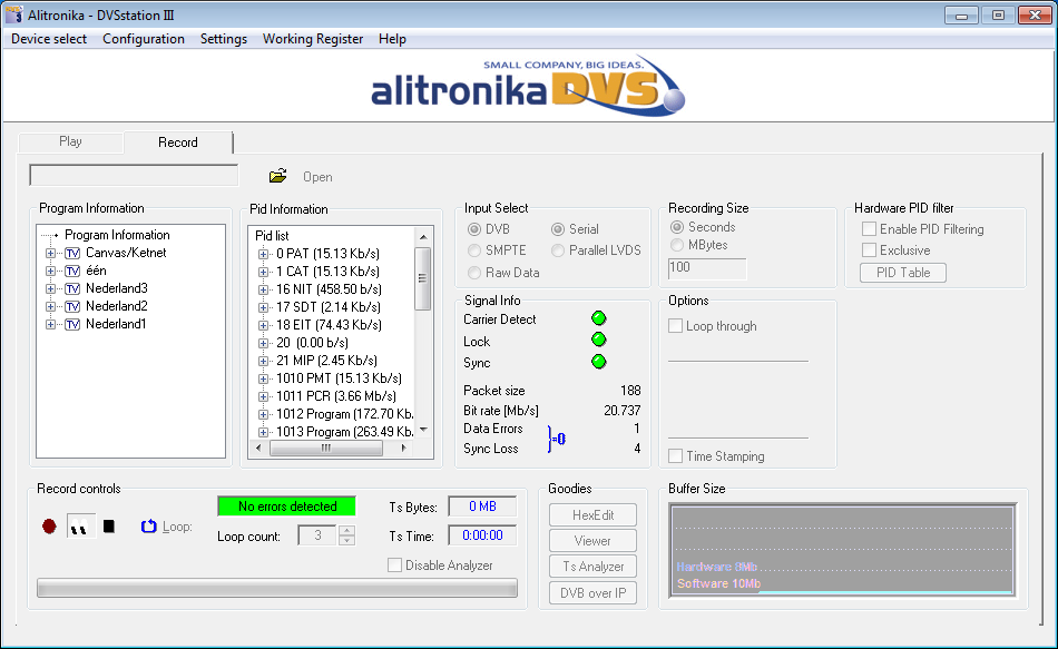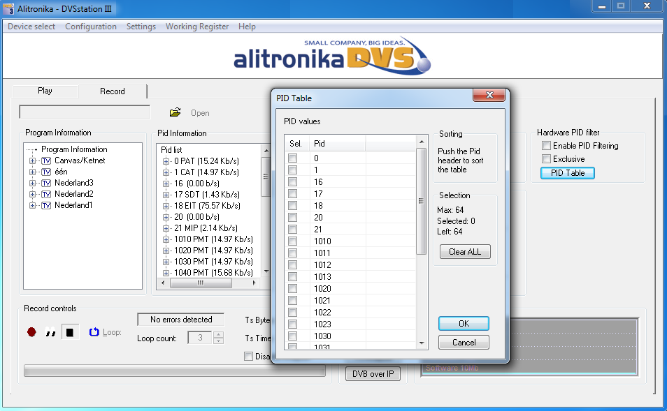Các thiết bị Alitronika được hỗ trợ bởi DVSStation3 / DVSStation4 hoặc DVSStationIP, phần mềm ứng dụng chuyển đổi, ghi, phân tích và ứng dụng chuyển đổi MIỄN PHÍ của Alitronika. Vui lòng tham khảo đặc điểm kỹ thuật và Hướng dẫn sử dụng của các ứng dụng này để biết thêm thông tin. Tốt hơn nữa hãy tải chúng xuống từ trang web của chúng tôi và dùng thử. Chúng hoạt động ở chế độ DEMO mà không cần bất kỳ thiết bị Alitronika nào.