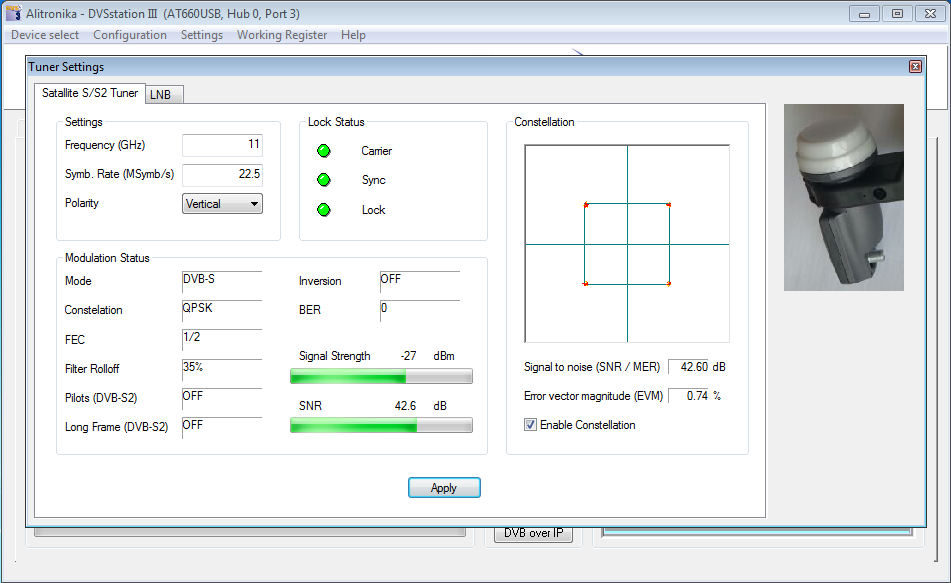 DVB-S2/S Tuner Settings => With all correct settings