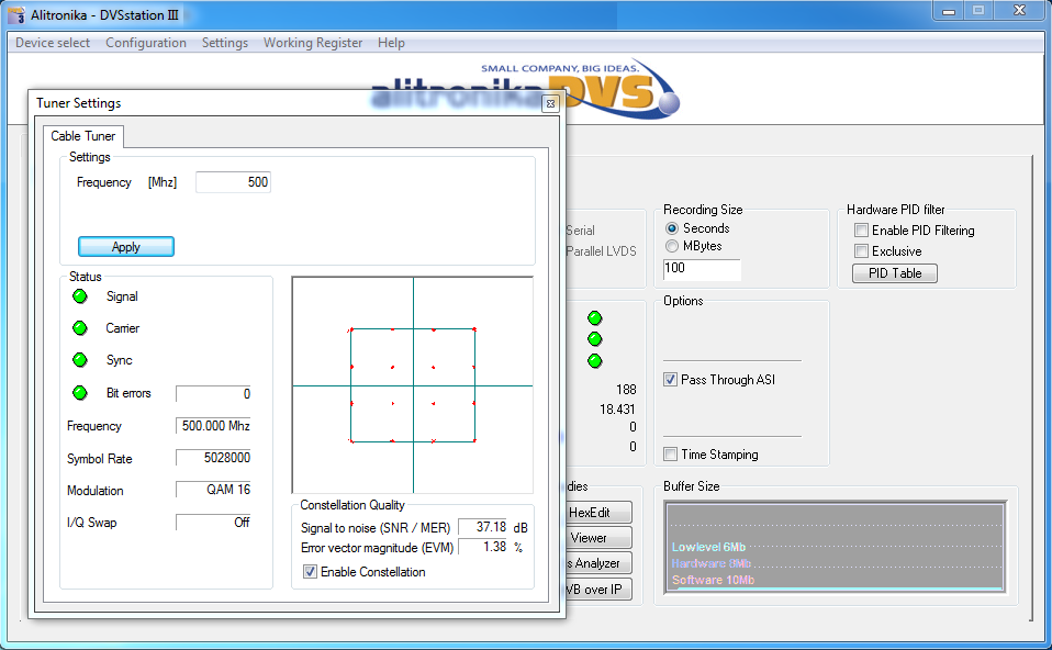 DVSStation3/4/IP: Các thiết bị Alitronika được hỗ trợ bởi DVSStation3 / DVSStation4 hoặc DVSStationIP, phần mềm ứng dụng chuyển đổi, ghi, phân tích và ứng dụng chuyển đổi MIỄN PHÍ của Alitronika. Vui lòng tham khảo đặc điểm kỹ thuật và Hướng dẫn sử dụng của các ứng dụng này để biết thêm thông tin. Tốt hơn nữa hãy tải chúng xuống từ trang web của chúng tôi và dùng thử. Chúng hoạt động ở chế độ DEMO mà không cần bất kỳ thiết bị Alitronika nào.Play Screen