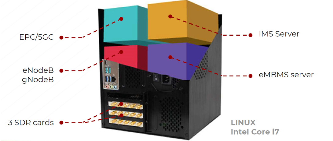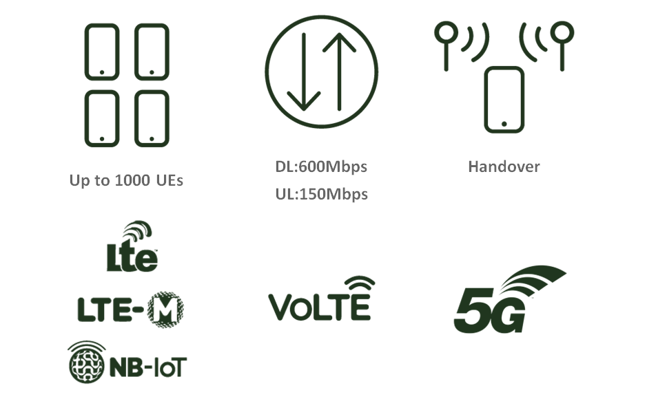 Nó hoạt động như eNodeB, gNodeB, EPC và 5GC tuân thủ các thông số kỹ thuật 3GPP, cho phép kiểm tra chức năng và hiệu suất của các thiết bị NR (chế độ SA/ NSA), LTE, LTE-A, LTE-M và NB-IoT. Thiết bị được hoàn thiện bởi một máy chủ IMS tích hợp và một cổng eMBMS để kiểm tra VoLTE và eMBM.