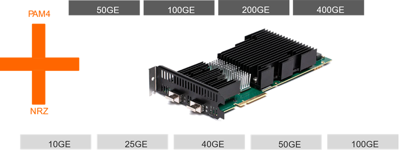 - Sử dụng SerDes 112G (PAM4 112G) và ba bộ mô-đun (Freya-800G-1S-1P và Freya-800G-4S-1P) hỗ trợ bốn tốc độ mạng Ethernet khác nhau, lên đến 400GE.