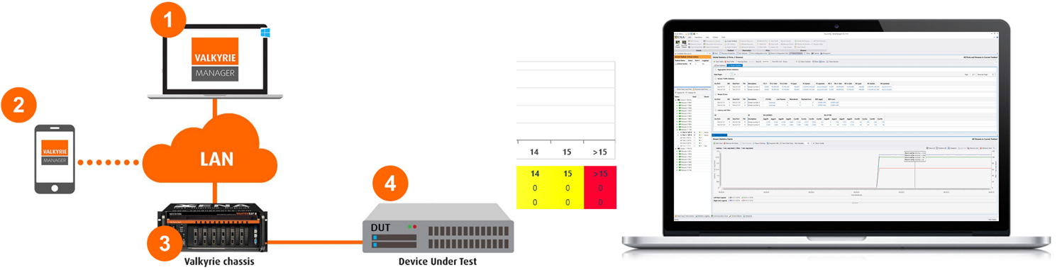 - Valkyrie cung cấp một loạt các thành phần phần cứng - các tùy chọn chassis và mô-đun kiểm tra đa dạng cho việc kiểm tra tất cả các kịch bản từ 10/100Mbps đến các cổng tốc độ cao lên đến 800GE.