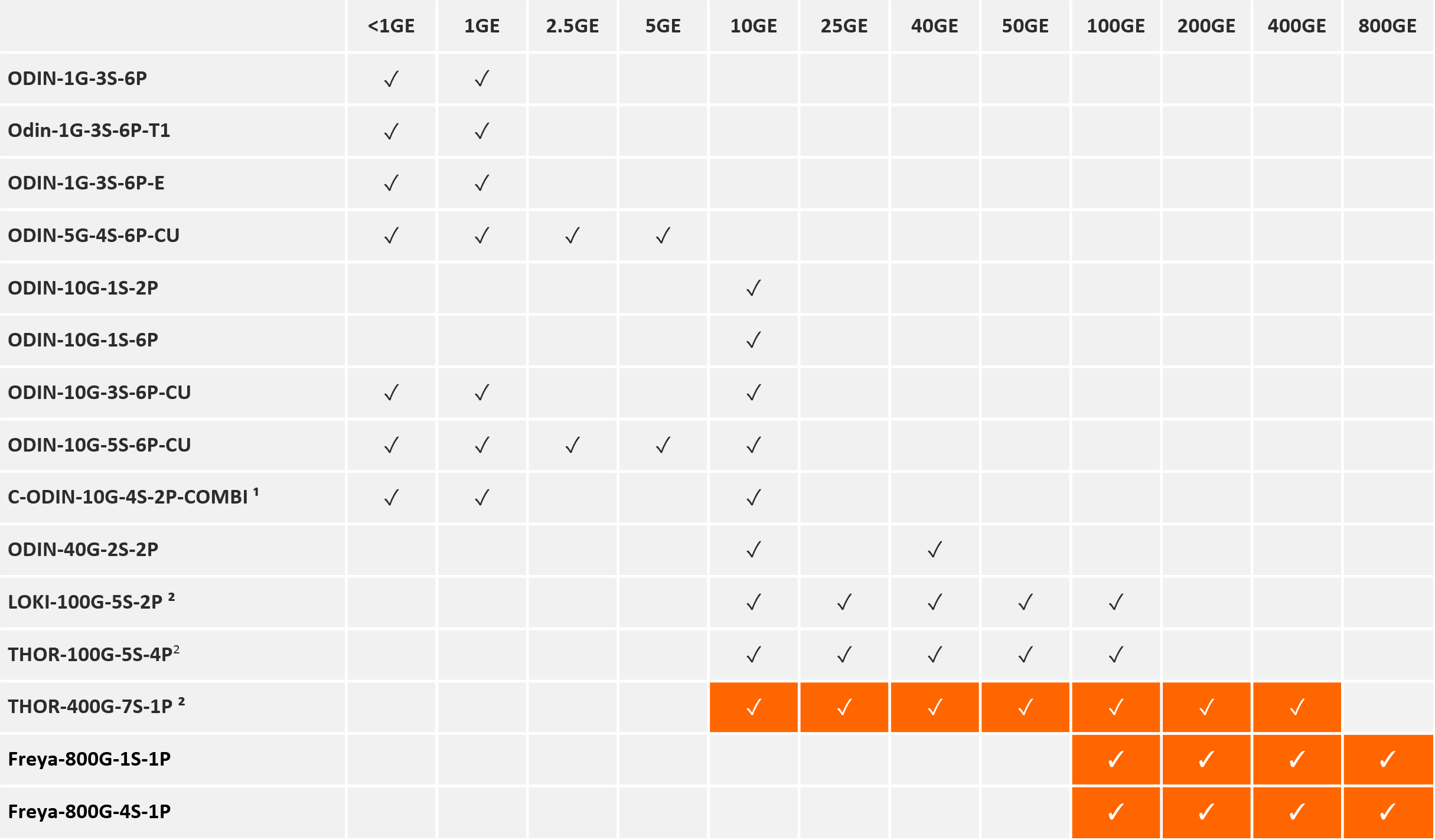 Valkyrie cung cấp hai dòng chính, bao gồm Valkyrie Bay và Valkyrie Compact. Valkyrie Bay hỗ trợ 12 khe cắm cho khả năng mở rộng tốc độ cổng, trong khi Valkyrie Compact là một máy chủ 1U chỉ với một khe cắm cho giải pháp hiệu quả về chi phí nhất.