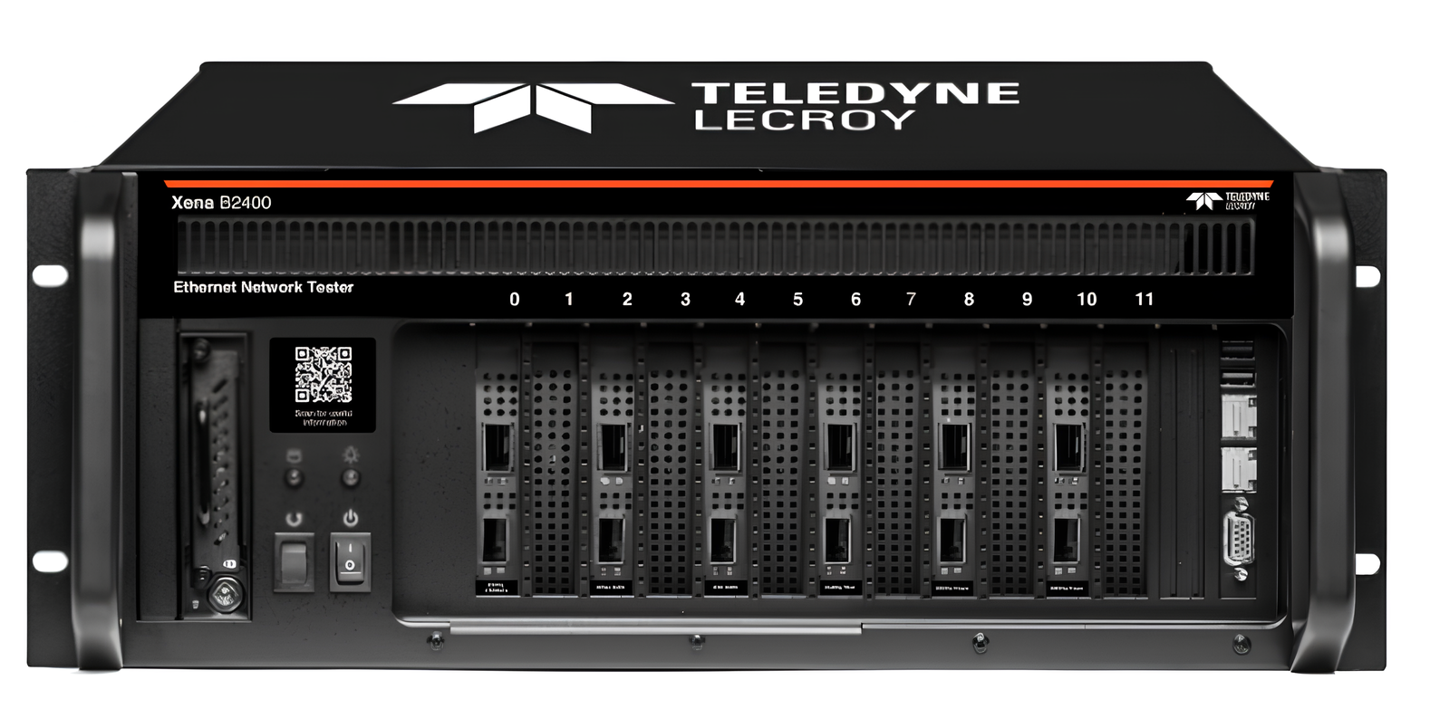 Xena B720/2400 是一款 4U 模組化機箱,可安裝多達 12 個以太網路測試模組,為使用者提供高效能、高密度的測試解決方案,同時保持低功耗設計。